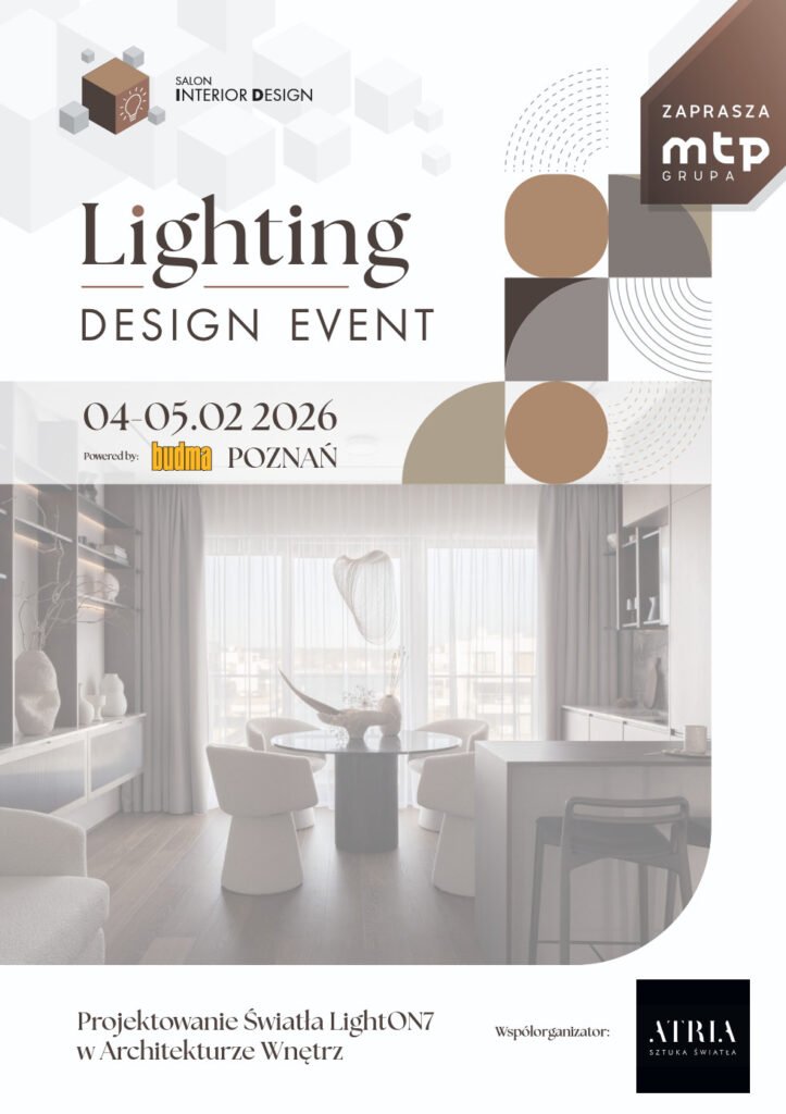 Dobre wnętrza zaczynają się od światła. To spotkanie dla tych, którzy chcą projektować wnętrza świadomie, nowocześnie i odpowiedzialnie. Dobre światło nie świeci przypadkiem. Lighting Design Event to nie tylko wykłady, ale także panele dyskusyjne, warsztaty Sztuki Światła, spotkania networkingowe i możliwość wymiany doświadczeń oraz konsultacji z liderami branży, którzy wyznaczają kierunki w nowoczesnym projektowaniu światła. Możliwość zobaczenia, poczucia i zrozumienia, jak światło wpływa na odbiór przestrzeni, komfort użytkownika i jakość projektu. Patronat nad wydarzeniem objęli min. Stowarzyszenie Architektów Wnętrz, Uniwersytet Artystyczny w Poznaniu, Klub Architekta i KNX Polska. Salon Interior Design w 2026 roku to doświadczenie, które na trwałe warto zapisać do kalendarza wydarzeń dla architektów i architektów wnętrz.