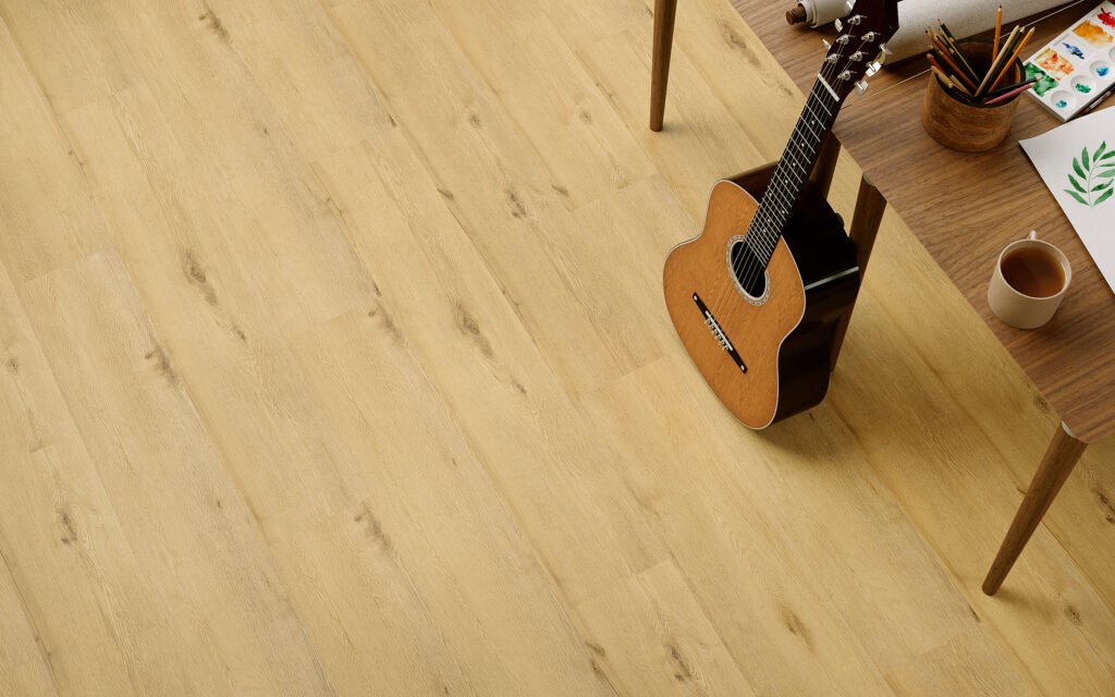 Panele nie puchną, nie odkształcają się, nie wymagają dodatkowego zabezpieczania przed zawilgoceniem. To istotna przewaga nad panelami laminowanymi i większością tradycyjnych podłóg drewnianych.