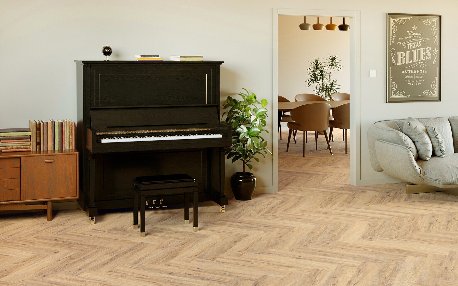 Idealna podłoga nie tylko skutecznie tłumi dźwięki, zapewnia komfort, ale też gwarantuje perfekcyjny wygląd na lata. Takie właśnie są panele winylowe VIN IN – stworzone po to, żeby codzienność miała lepszy rytm. Czasem jazzowy, czasem rockowy, a czasem spokojny jak blues o poranku.